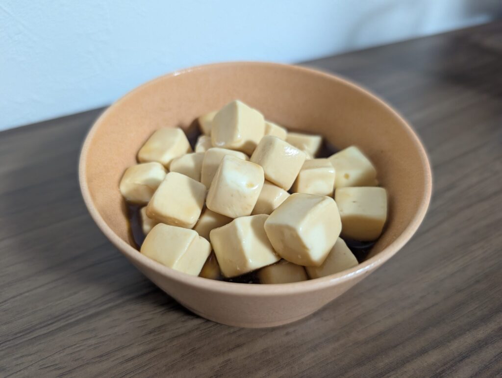 合わせたおつまみは「クリームチーズのめんつゆ漬け」。作り方は驚くほど簡単で、クリームチーズを一口大に切ってめんつゆに30分ほど漬けるだけ(めんつゆが濃いと感じる場合は少し薄めてもOK)。30分ほど経ったら軽く汁気を切って、お好みで黒胡椒を散らすとアクセントになります。まろやかなチーズのコクと、めんつゆのうま味がワインの酸味といい感じに寄り添って、赤と合わせるなら意外なほど相性がいいですよ。